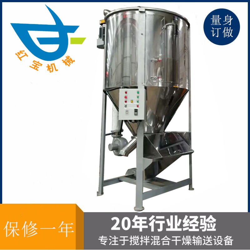 塑料烘干机结构特征及部件说明1.整体机座,结构坚固、运转平稳,搅拌桨叶及物料接触处全用不锈钢制成,有良好的耐腐蚀性,保持物料的质量和清洁,不致变色。2.传动机构采装置在桶体**顶部的电动机通过三角带传动螺杆、蜗轮,以1:40的减速带动搅拌机直接传动,使用时无过大响声,并有足够的储油量,能得到良好的润滑。塑料烘干机安装方法