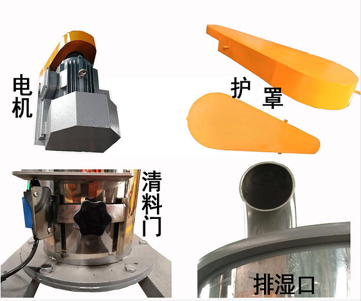 4、内层桶体及螺旋浆、主轴、桶、支架、落料斗、卸料口等均为不锈钢材料;